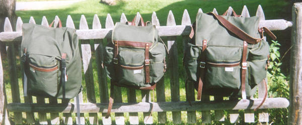canvas straps. Middle: Expedition Pack, leather options. Right: